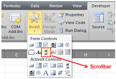 Click on Scroll Bar (Form Control) button and click anywhere on your worksheet.