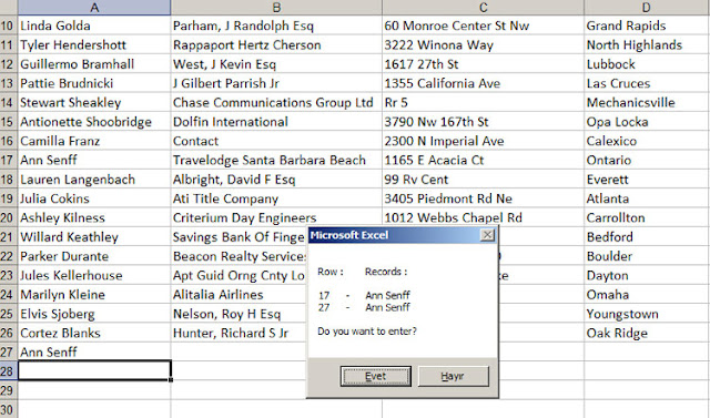The MsgBox in this template shows repeated values that are in which row .If you want, you can
