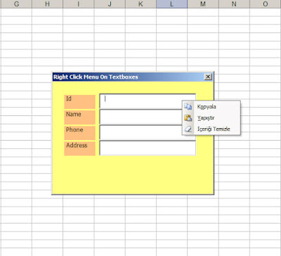 Menu in sample is created as a popup commandbar (with class module).The menu can be activated from the MouseUp event of the textbox: