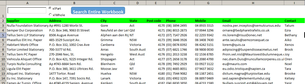 The searched value can be easily found in all the workbook with the textbox and option buttons that they are added to the workbook's first sheet .