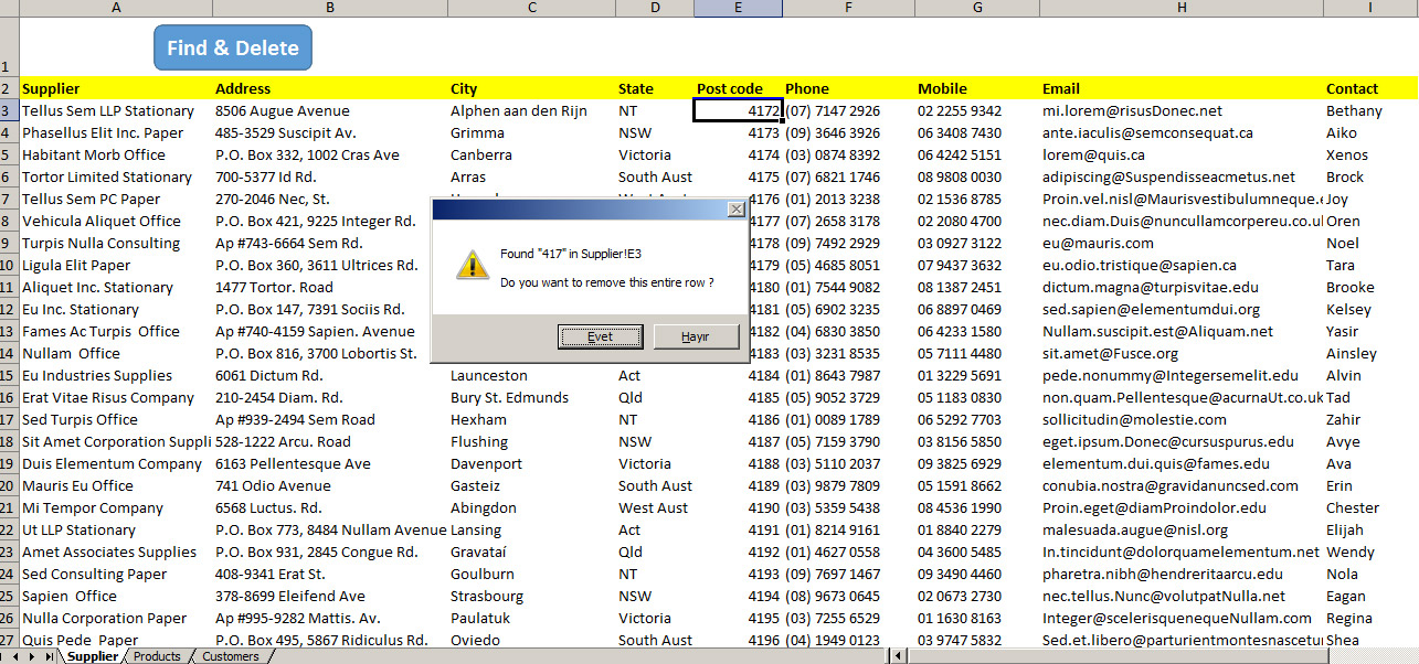 If you click "Yes" button on the msgbox, the row that contain value is deleted as whole.